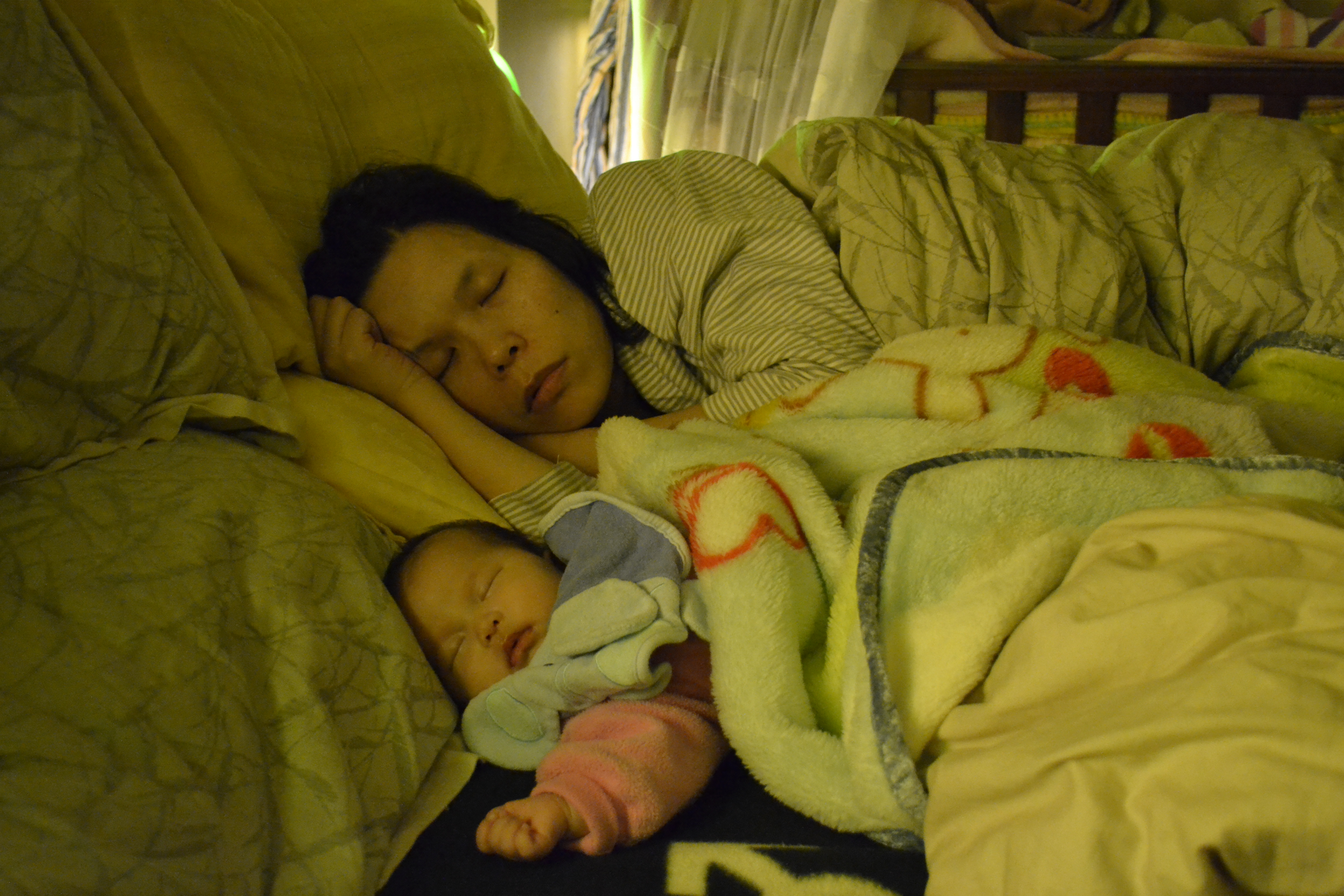 就這樣小朋友想哭又想睡,想哭又想睡,媽媽抱起來又放下,抱起來又放下,終於在四點左右小Juno睡著,媽媽也可以睡了。